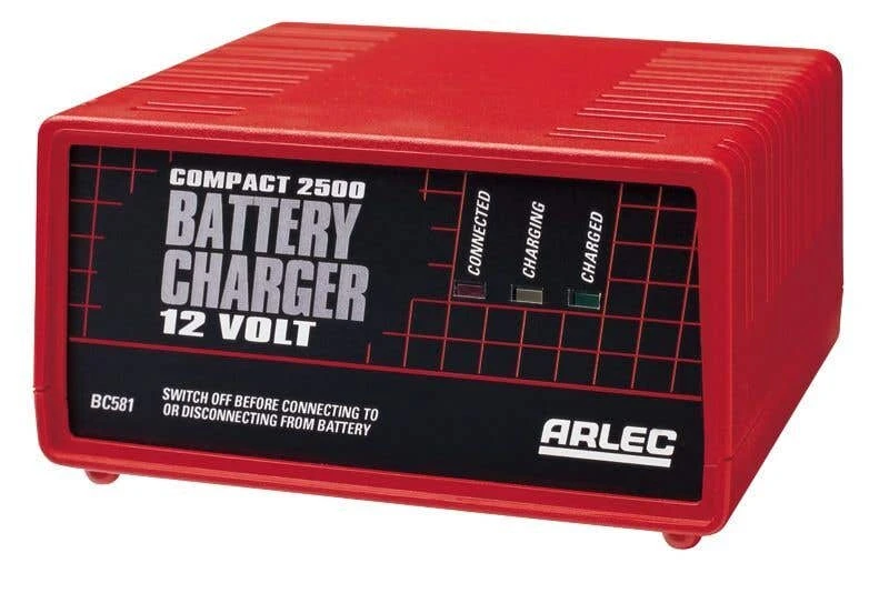 Arlec Compact Charger with LED Display is a compact and reliable tool for charging . With an output of 12 volts 2.5amp continuous, this charger is suitable for charging typically small automotive lead-acid batteries (approx 10 to 60 amp hour) overnight. The charger has a simple 3 LED charge status indication and also has reverse polarity detection.