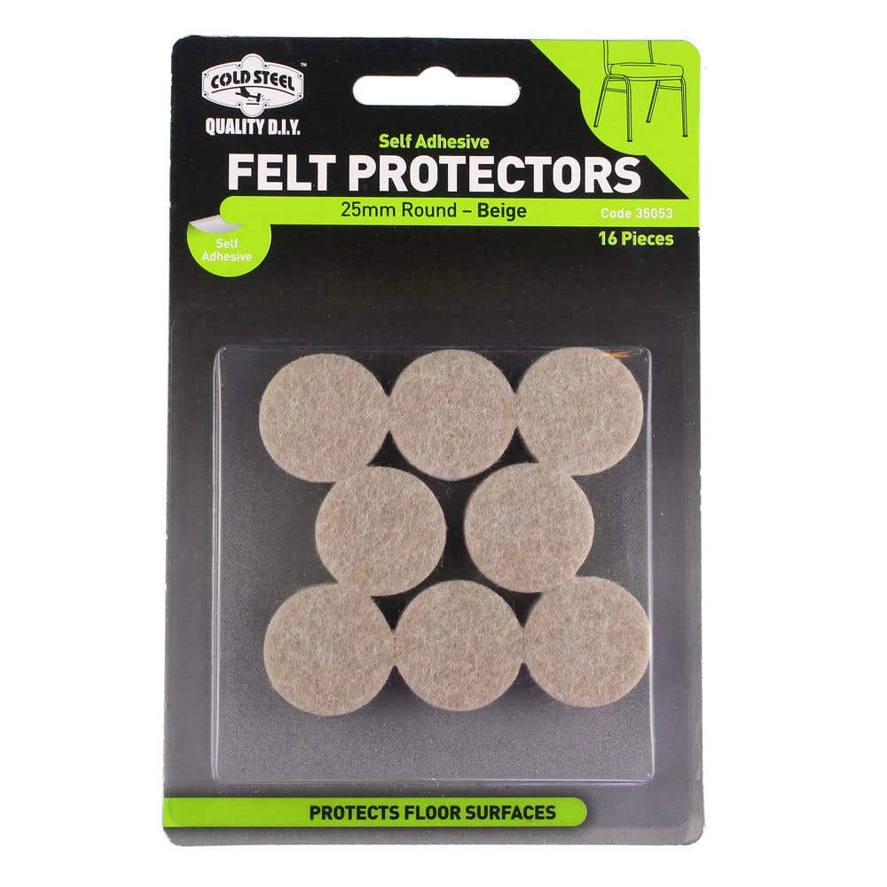 Protect your floors from scratches and noise from the movement of your furniture and provide a non-slip surface with Cold Steel Felt Protectors. These self-adhesive pads are made from soft felt that will not mark your floor and can be used on all types of furniture throughout the home.