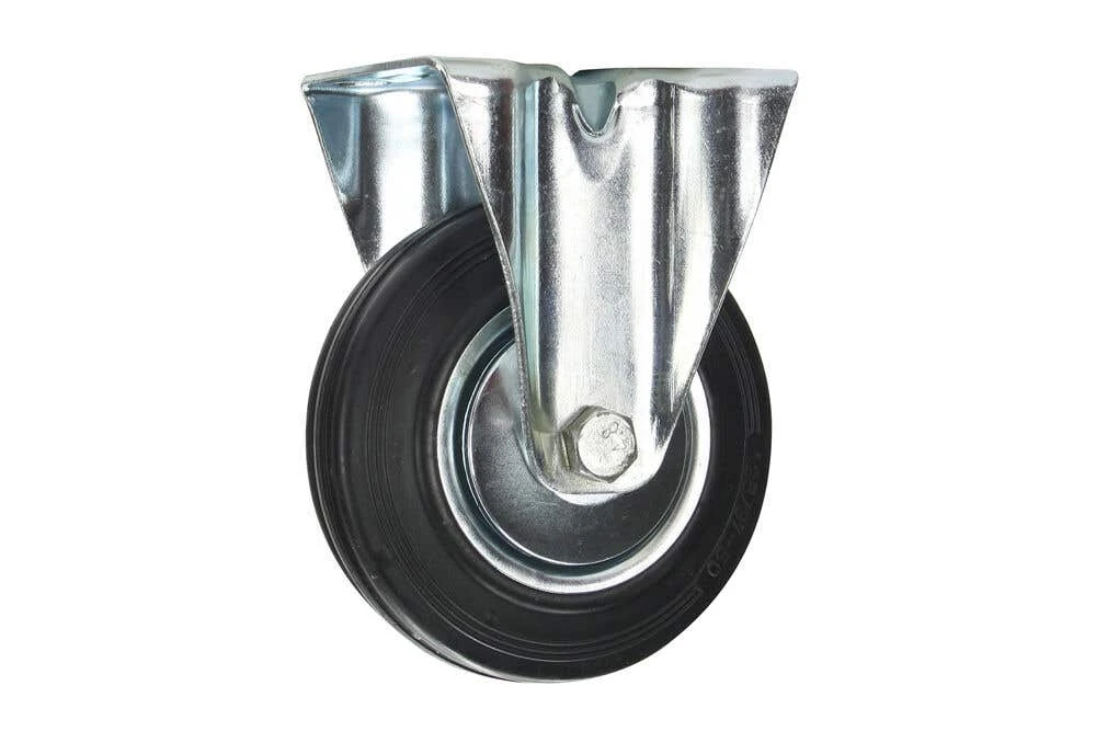 - 125mm heavy-duty black rubber fixed castor with plate fitting