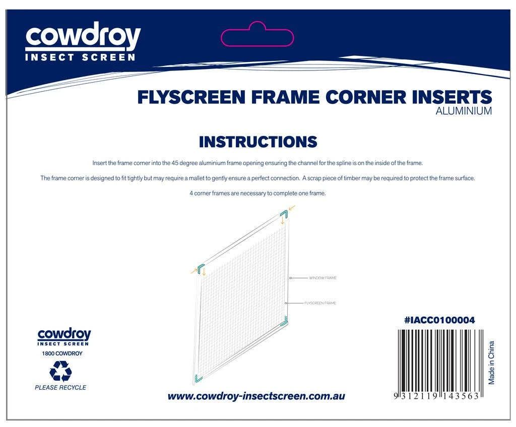 - The Cowdroy Flyscreen Frame Corner Aluminum – 4 Pack includes four corners, providing enough to construct or repair a single flyscreen frame