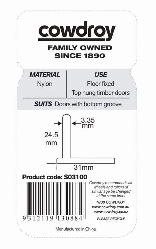 - Mounts to floor below sliding door requiring a 6mm wide groove, 25mm deep in botton of door.