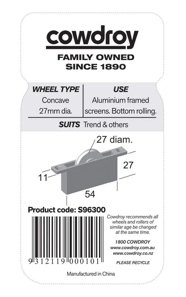The Cowdroy Sheave Concave Wheel Type 27mm is a durable and reliable solution for sliding door and gate systems. The concave shape of the wheel helps to ensure that the cable or rope remains centred, reducing the risk of damage to the system and providing smoother operation. The wheel is easy to install and provides reliable performance, making it a popular choice for both homeowners and contractors. Whether you need to repair an existing sliding door or gate system or are building a new one, the Cowdroy Sheave Concave Wheel Type 27mm is an excellent choice for ensuring reliable operation and longevity.