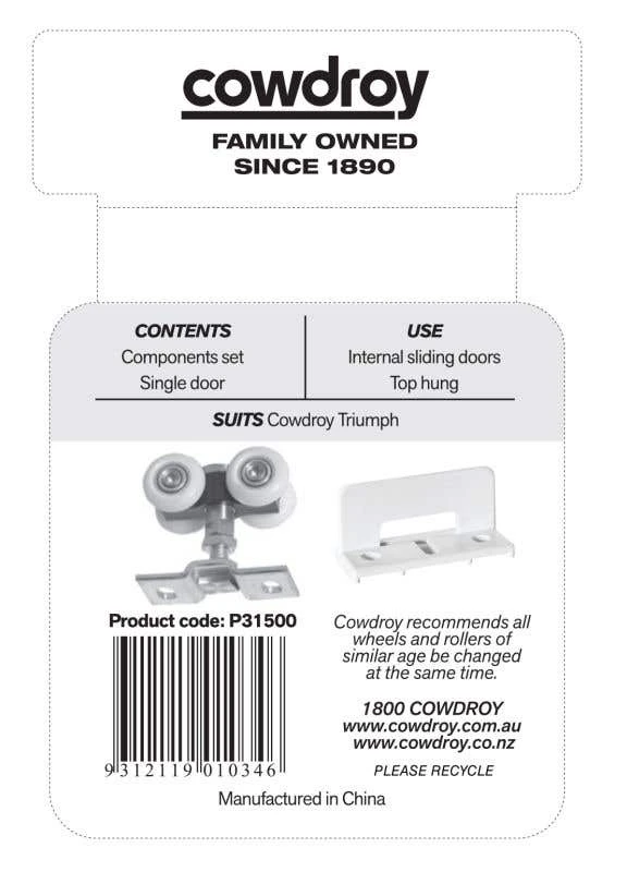 - Suitable for sliding doors in top mount application using TT320 track or side mount application using TT323 track.