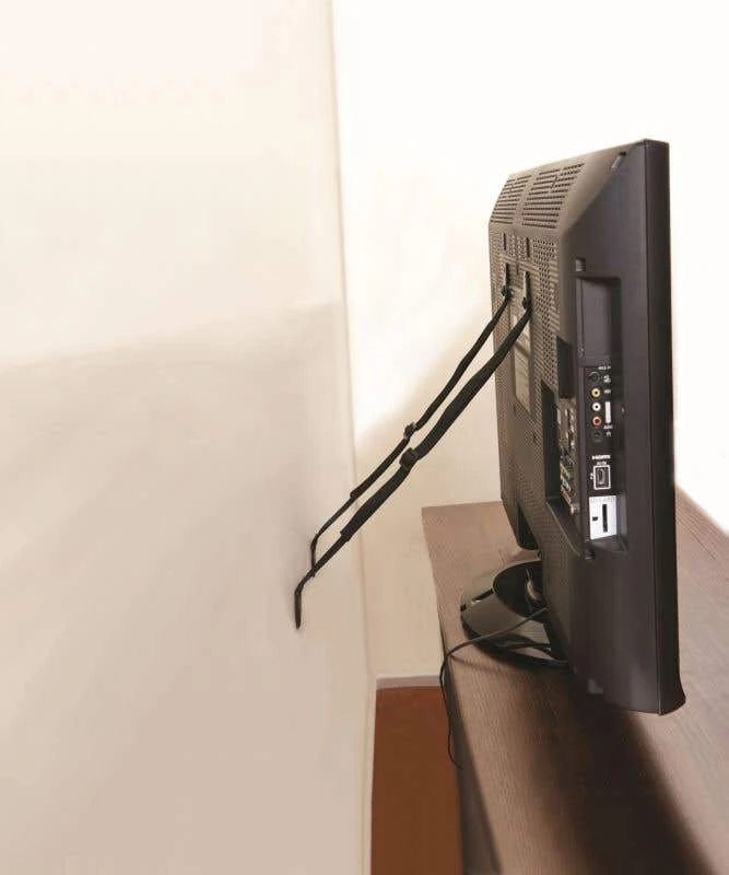This simply designed, but highly effective TV saver is the ideal way to help prevent a flat-screen TV from tipping over – one of the leading preventable causes of childhood injuries and deaths. It attaches to furniture or walls to provide maximum stability.