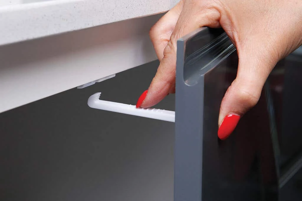 Dreambaby Safety Catches are an essential product for homes with children. Without them, all cabinets and drawers become a dangerous temptation for children. The catches are easily installed, extra strong and self-locking, suitable for use on the top or side of most cabinets.