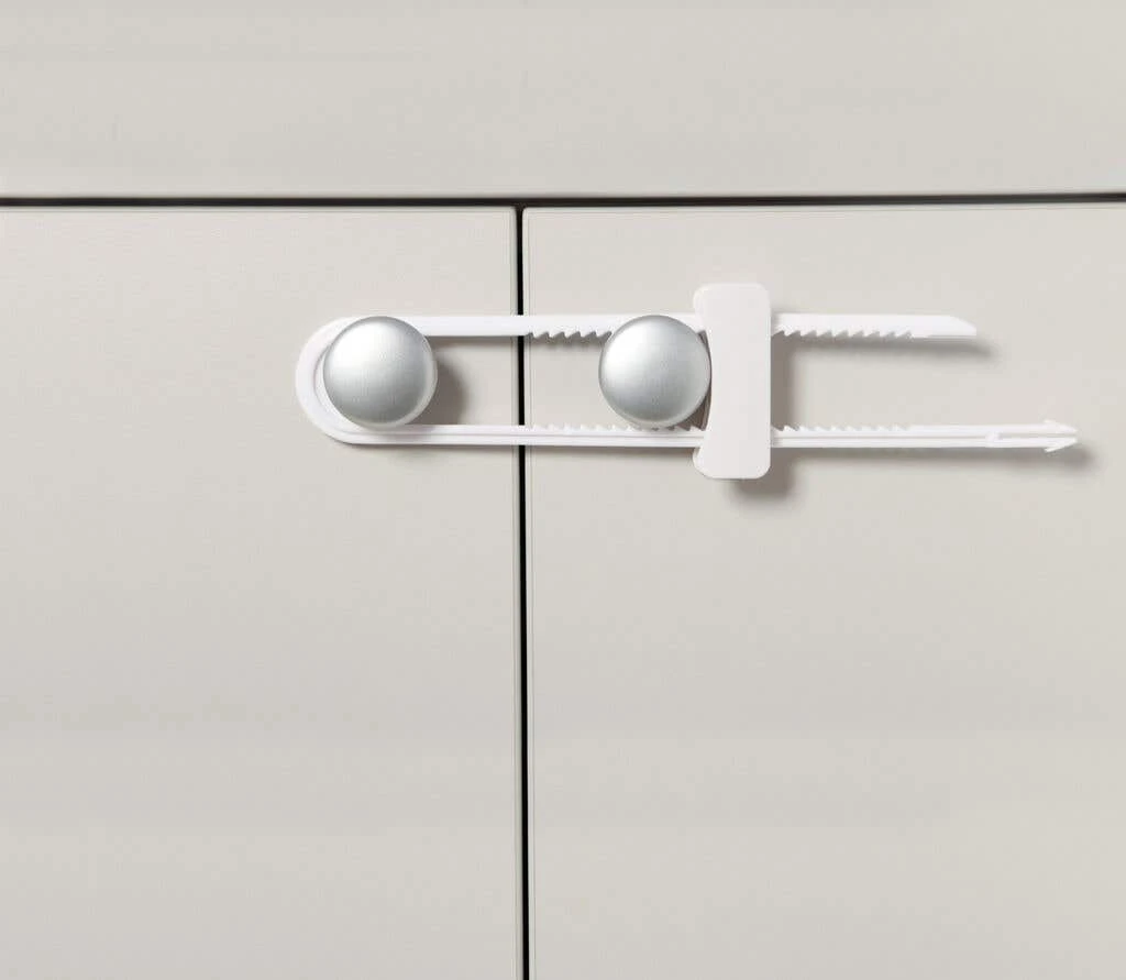 Use Dreambaby Sliding Locks to help secure cabinet doors and drawers quickly and easily. These easy-to-use security additions require no drilling or tools and close with a simple sliding action. Designed for long-term use, they’re also suitable for use with mushroom-shaped knobs or D-Shaped handles.