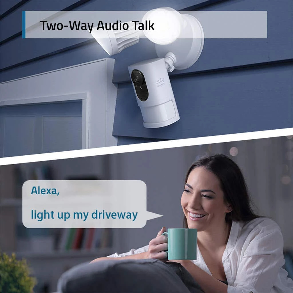 Comprehensive Safety Solutions for Your Home. Every Security product is engineered to ensure your security data is kept private. Have peace of mind that you will have a secure record of everything that happens around your home. Human detection technology enables the camera to intelligently detect body shapes. Ensuring you are only alerted when a person, and not a stray cat, approaches. Detailed and full-colour recordings even at night. Get notified immediately of activity and interact in real-time. Instant alerts allow you to always have an eye on your home.IP65 Weatherproof rating – built to withstand freezing cold winters, heavy downpours or dry, hot summers. Wide-angle view ensures you get the whole picture while streaming in full 2K resolution & 2,000 Lumens light up every corner and scare off intruders when motion is detected. Communicate with anyone outside via the security APP, even when you’re not home. You shouldn’t have to pay monthly fees for data storage. Local storage is more secure and doesn’t cost extra! Connect your Floodlight to Alexa or Google Assistant and check-in anytime on what’s happening outside your home.