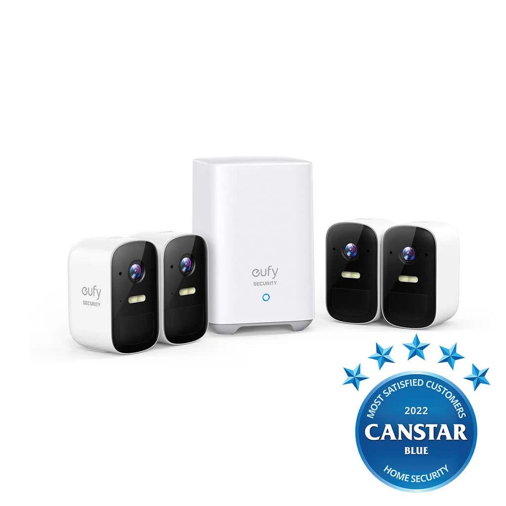 - What’s Included: eufyCam 2C 2K Pro Camera x 4, HomeBase2, Mount, Micro USB Charging Cable, AC Power Adapter, Ethernet Cable & User Manual