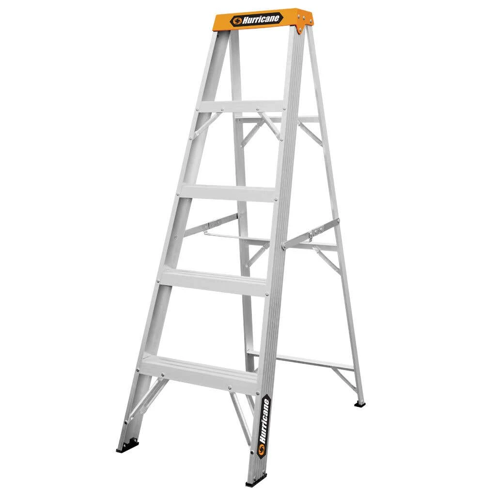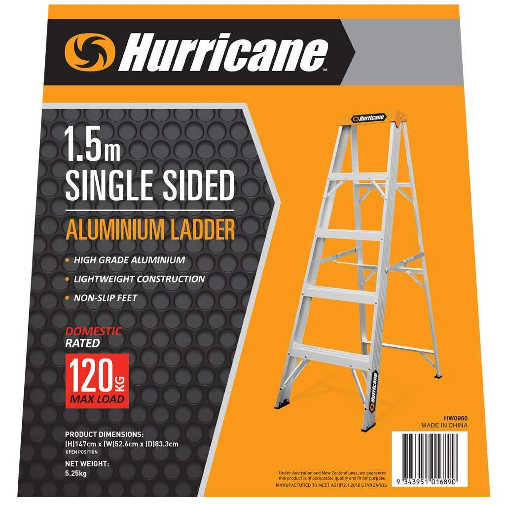 The Hurricane 1.5m Single-Sided Ladder 120kg Domestic is a lightweight aluminium industrial ladder, making it suitable for domestic use. The top plate is powder-coated and features non-slip feet to help you maintain your grip on the ladder during use. Side braces with cross-section stabilisers mean that you are secure when standing still on this ladder, while riveted steps ensure that the ladder will last for years.