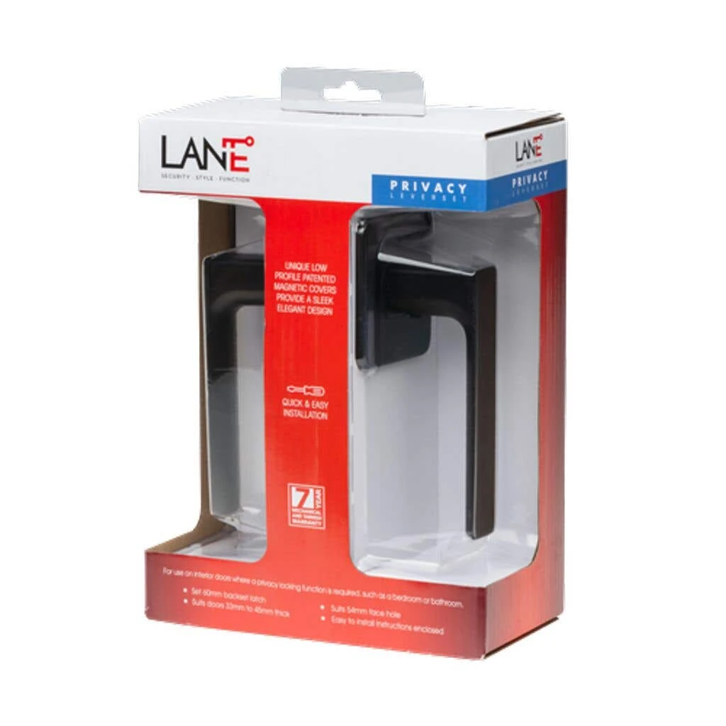 Lane Evie Privacy Square Matte Black is a door blind for left and right-handed inward and outward-opening doors. This Lane Low Profile series can replace most existing levers. Update your door with just a screwdriver and a few minutes due to the Lane self-alignment features and patented magnetic covers. This innovative design will give your room a stylish design for years to come.