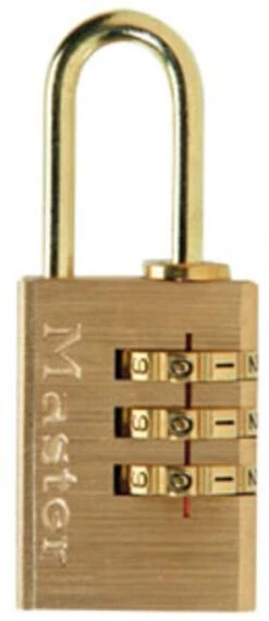 Get a great all-around padlock at a great price with Master Lock’s 20mm wide solid metal body, nickel plated steel shackle for cut resistance and 3 dial combination security for keyless convenience. It’s easy to set and reset your own numeric combination with this lock.