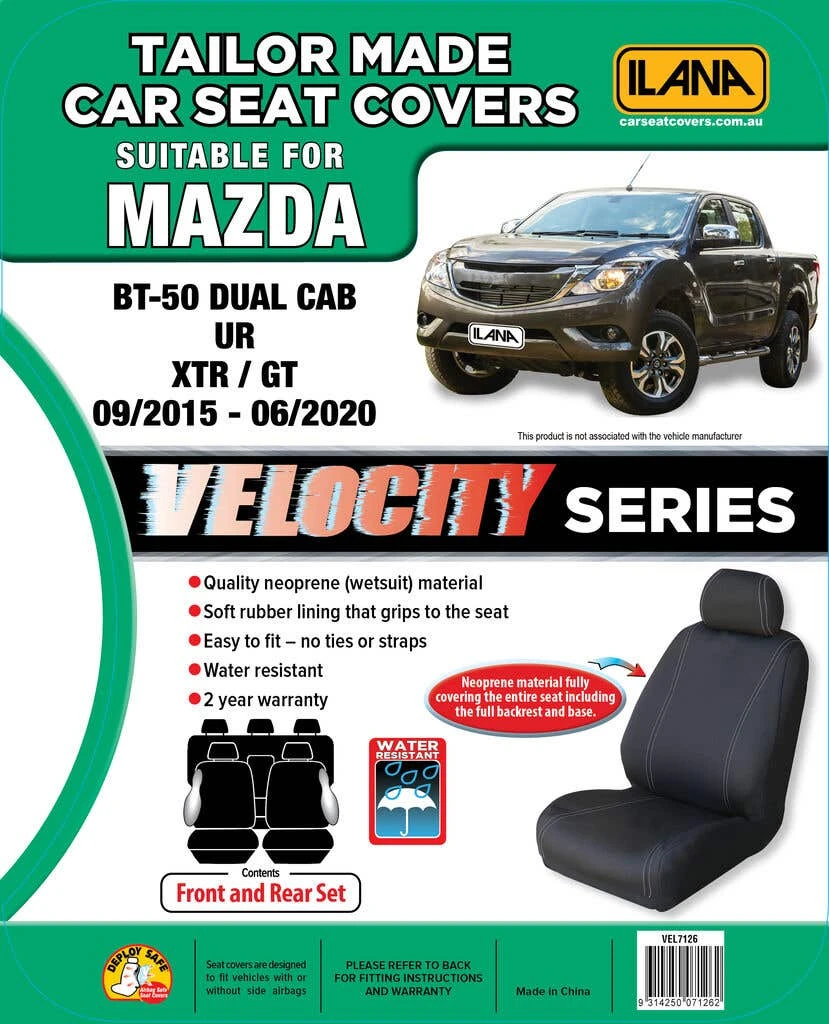 Velocity Neoprene Tailor Made Car Seat Covers are expertly crafted to fit perfectly on your vehicle. Each product is tailored to fit a specific vehicle. Made for heavy-duty use using a hard-wearing Neoprene (wetsuit) material, they are easy to fit with a unique tieless Velcro system and 100% waterproof to protect against spills. Velocity Neoprene seat covers are made with Neoprene fabric all over the seat for superior protection. Designed specifically to allow full use of your seat features including adjustable headrests, seatbelt provisions, split fold seating, armrests, seat controls, map pockets and boot access points.