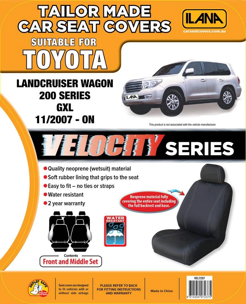 Velocity Neoprene Tailor Made Car Seat Covers are expertly crafted to fit perfectly on your vehicle. Each product is tailored to fit a specific vehicle. Made for heavy-duty use using a hard-wearing Neoprene (wetsuit) material, they are easy to fit with a unique tieless Velcro system and 100% waterproof to protect against spills. Velocity Neoprene seat covers are made with Neoprene fabric all over the seat for superior protection. Designed specifically to allow full use of your seat features including adjustable headrests, seatbelt provisions, split fold seating, armrests, seat controls, map pockets and boot access points.