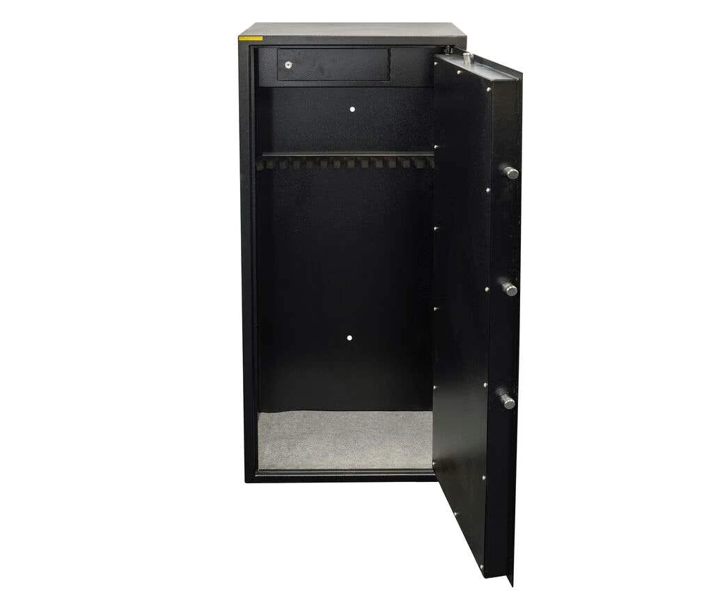 Compliant with both category A and B firearm regulations. This steel Gun Safe from Sandleford stores up to 14 guns. It includes a separate, completely lockable ammo box, floor carpet and floor mounting bolts for additional security.