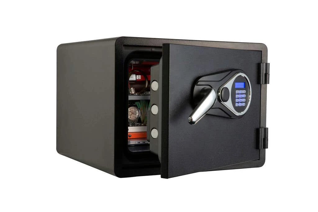 This Sandleford Viking Safe is fireproof and waterproof so you can keep your valuable items secure. It has a digital keypad with an LCD display and can be bolted to the floor for additional protection. Inside there’s an adjustable storage shelf and pocket so you can keep your contents organised and tidy.