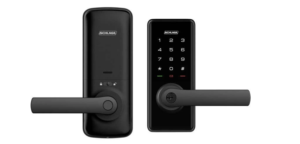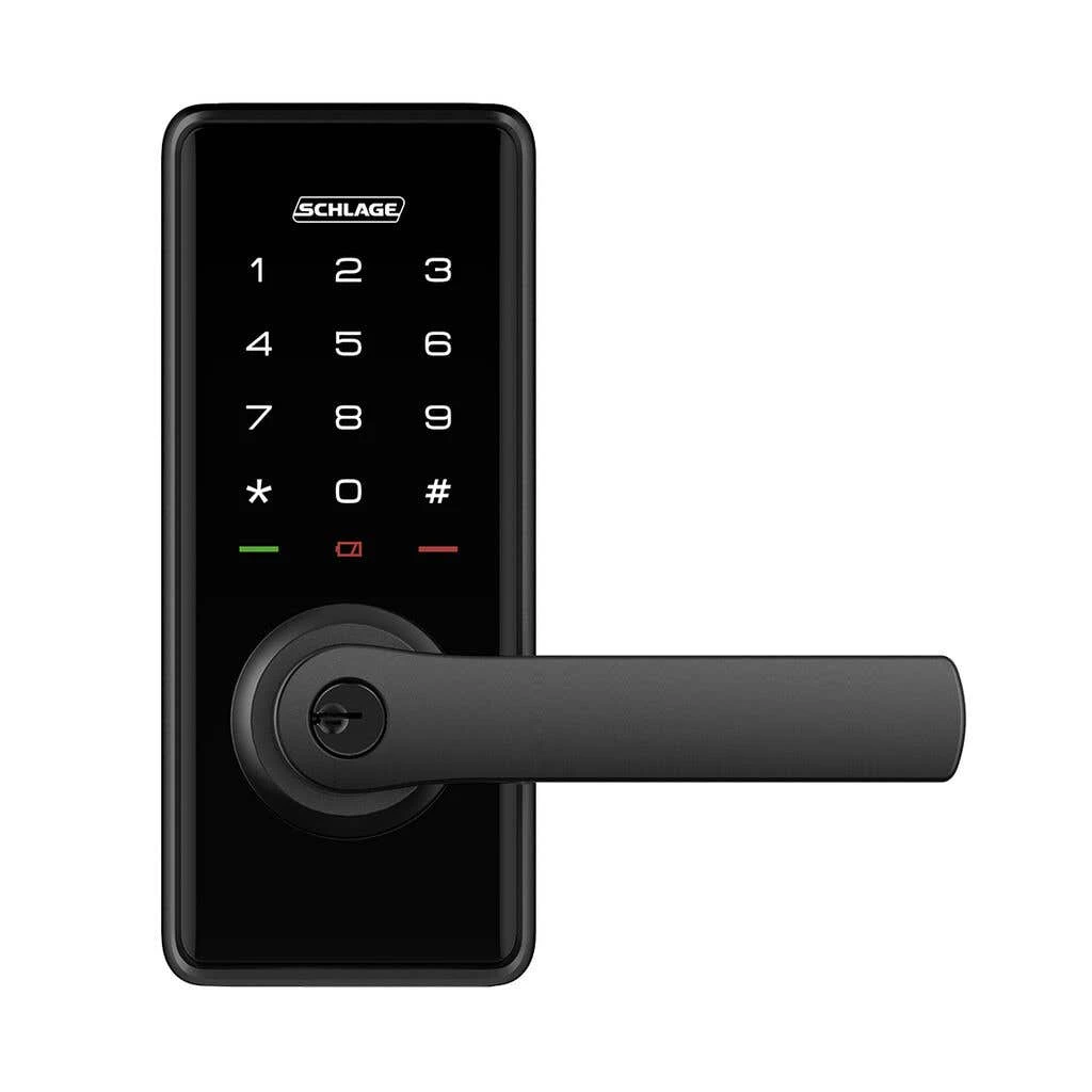 - Access options include touchpad and smartphone using the free Schlage Abode App