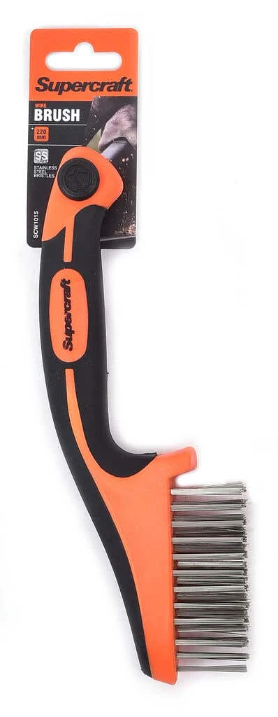 Use the 220mm stainless steel wire brush to clean and deburr metal surfaces. This brush is ideal for general purpose use in light deburring, cleaning, and dust removal. The plastic handle is impervious to most oils, thinners, and brake fluids making it ideal for use in mechanical workshops.