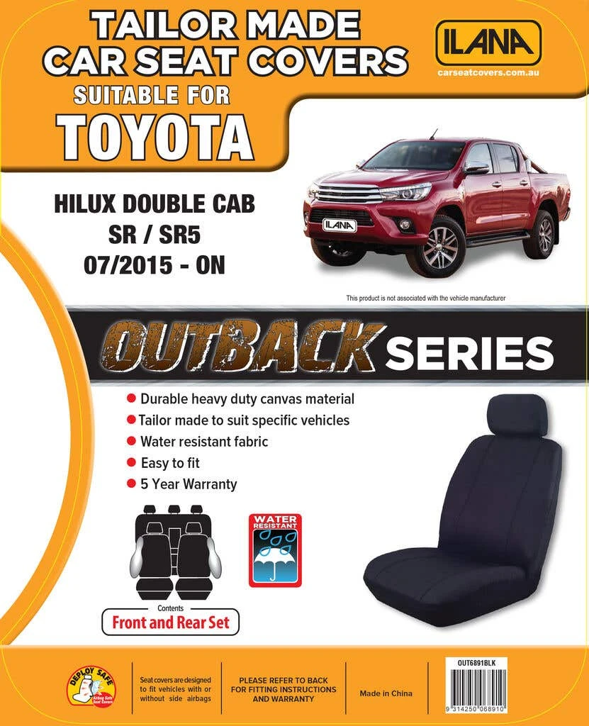 Outback Canvas Tailor Made Car Seat Covers are expertly crafted to fit perfectly on your vehicle. Each product is tailored to fit a specific vehicle. Made for heavy-duty use using a hard-wearing cotton canvas material, they are easy to fit and 100% waterproof to protect against spills. Designed specifically to allow full use of your seat features including adjustable headrests, seatbelt provisions, split fold seating, armrests, seat controls, map pockets and boot access points.
