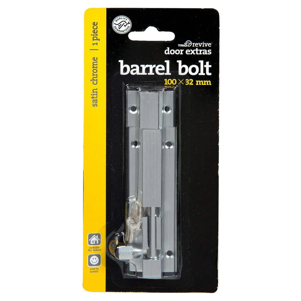 This barrel bolt is a stylish way to make a statement on your front door. Solid brass construction provides durability, and it has a satin chrome finish that will match most any decor. This barrel bolt is 15 inches long, 32mm wide and 100mm tall, making it easy for you to use in any door or window frame.