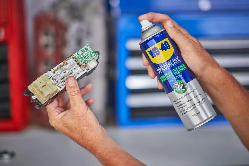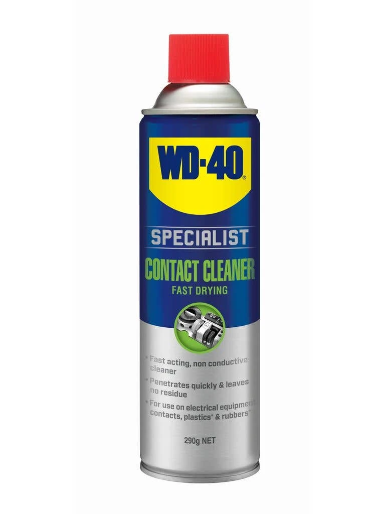 - WD-40 Specialist® Fast Drying Contact Cleaner is excellent for cleaning oil, dirt, flux residue and condensation from sensitive electronics and electrical equipment