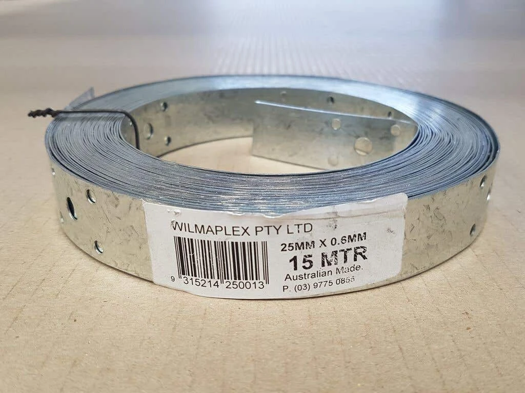 The Wilmaplex Hoop Iron Perforated 25 x 0.6mm x 15m is a versatile and durable metal strip designed for various construction and projects. With its perforated design, this hoop iron provides excellent flexibility and allows for easy fixing and fastening.