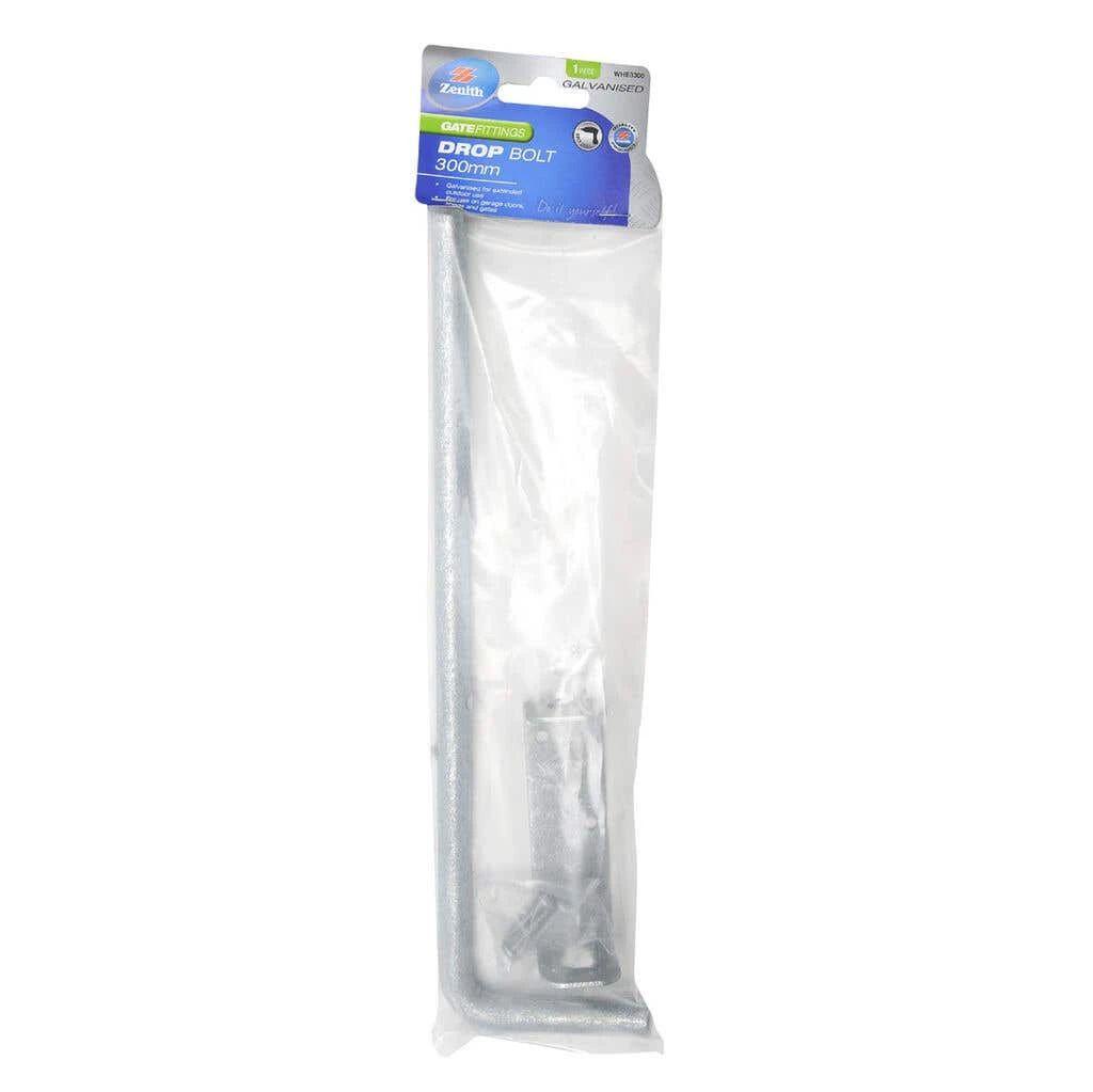 A Zenith drop bolt is a strong and sturdy way to secure garage doors, sheds and gates. This drop bolt features a 300mm shank. It comes with self drill screws for quick and easy installation.